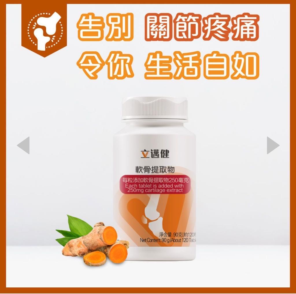 關「健」.關鍵 軟骨磨損一時三刻不會輕易被察覺,但年齡漸長後,關節軟骨所需的營養素不足,受損組織無法及時自我修復時,關節問題就會伴隨各種疼痛而來。 在您身體靈活自如,生活自在的時候,就該開始保護關節健康! 立邁健全面配方包含自主研發核心成分Jointpep ™ 關節肽(軟骨提取物),有效預防和修復關節磨損: 硫酸軟骨素、II 型膠原蛋白與透明質酸組合,修復關節磨損,延緩老化 配合護養關節的本草3 寶——薑黃、葛根、薏仁 生物控制酶解提取技術,讓活性成分更好被人體吸收 注意: 立邁健已經轉換最後圖片的新包裝 主要成分: 硫酸軟骨素、II型膠原蛋白、透明質酸、薑黃、葛根、薏仁 使用方法: 每日4粒。 產品編號: 12200801 規格: 120粒 “無限極”品牌,專注於中草藥,健康產品的研發、生產、銷售和服務 1992年,李錦記健康產品集團創建了「無限極」品牌,以「弘揚中華優秀養生文化,創造平衡、富足、和諧的健康人生」為使命,致力於為社會大眾提供高品質的中草藥健康產品和服務。 目前,無限極旗下擁有無限極(中國)有限公司、無限極(香港)有限公司、無限極國際有限公司、無限極(馬來西亞)有限公司、無限極(新加坡)有限公司、無限極(加拿大)有限公司,在中國內地擁有新會和營口兩大生產基地。 經過20多年的快速發展,無限極的市場規模不斷擴大,得到社會和消費者的認可。2017年,經世界品牌實驗室評估,「無限極」品牌價值已達至658.69億元人民幣。 無限極與諾貝爾獎得主和全球頂尖學府攜手合作,匯聚中華養生文化與尖端科技,為您帶來更優質,更高水平的中華本草健康產品。 劍橋大學 | 法國國家科學院 | 中科院上海藥物研究 注意: 此產品會以會員代購模式購買, 購買無限極產品滿HKD800免運費, 附上相關資料可以登記成為無限極會員, 成為會員後可享用會員的購物(一般為八折), HKD800以下收貨時有可能會出現會員名稱Judxxx Mxx 及 688xxxxx, 收貨地址則是客戶的指定地址, 未滿HKD800, 下單時請選擇”順豐運費到付”又或者加HKD36順豐運費