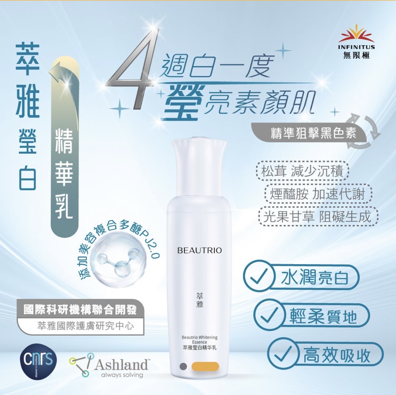 產品介紹 質地輕柔 白裡透光 3 大效能 ◆ 專利《美容複合多醣PJ 2.0 TM》 含天山雪蓮、" 仙草之首 " 鐵皮石斛及" 菌中之冠 " 銀耳 ,鞏固肌膚屏障,改善肌膚乾燥問題 ◆ 《雙重保濕成分》深入鎖水補水 蘊含玻璃酸钠 (透明質酸鈉)、泛醇 (維他命B5),令肌膚水潤柔嫩 ◆3 大核心成分《 精準祛黑、輕鬆煥白》 - 40%+ 純度的光果甘草: 1,164 倍抑制黑色素和美白功效是維他命 C 的 232 倍 - 2倍芍藥根提取物等 10 種植萃搭配: 溫和淡斑 - 凝血酸: 減少黑色素形成、均勻膚色 *請按照產品上的說明服用或使用,產品功效因人而異,圖片只供參考,一切以實物為準。 成分及包裝劑型 Polysac-Jolie2.0 美容複合多醣 - 天山雪蓮、鐵皮石斛、銀耳、乙醯基六肽-8、積雪草提取物 、丹參提取物等 產品包裝:30克