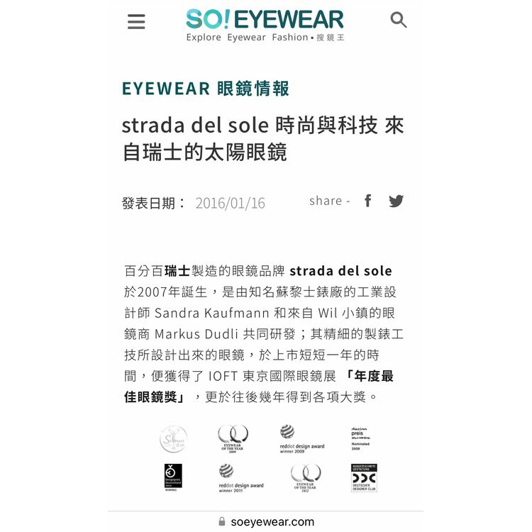 Strada Del Sole Eyewear (Swiss Made)專櫃