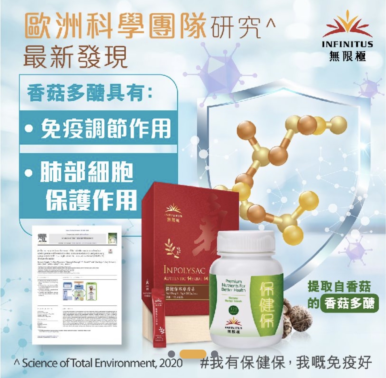 健康是寶 健康之「保」 中華本草複方 + 現代複合多醣 幫你扶助正氣、增強體質、調節免疫 經功能試驗,有效改善睡眠不佳、疲倦乏力、精神和食慾不振等煩惱 經過30多年的研發,黃金比例組成複合多醣,效果1+1>2 強健免疫防線 實驗證實,多醣能在腸道直接被吸收,有效全面激活免疫系統 歐洲科學團隊研究發現,保健保成分之一「香菇多醣」具有免疫調節作用和肺細胞保護作用,幫助緩解肺部氧化壓力,激活巨噬細胞。 使用方法 每日2次,每次3~4片,飯前半小時食用效果更佳 成分及包裝劑型 茯苓、靈芝、香菇、銀耳、桑椹、枸杞子、決明子、猴頭菇 產品包裝:120片